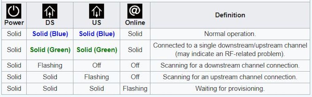 The cable modem statuses can be found under the DOCSIS Provisioning Status header.